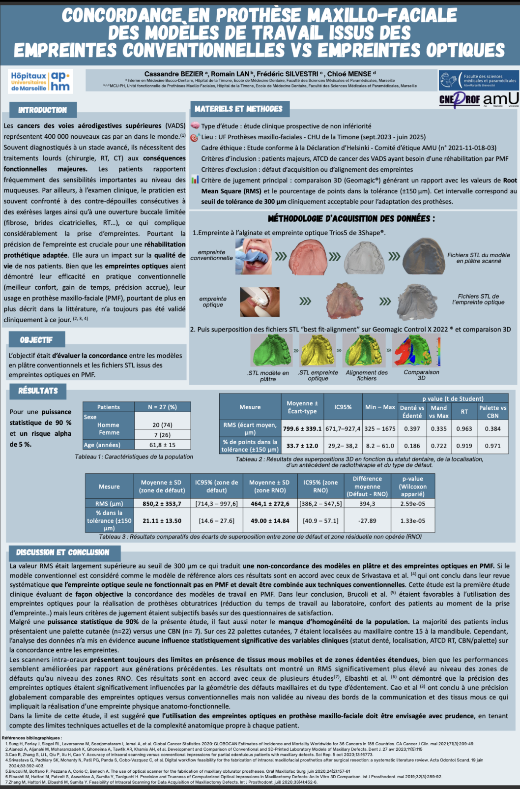 2025 – Concordance en prothèse maxillo-faciale des modèles de travail issus des empreintes conventionnelles versus empreintes optiques