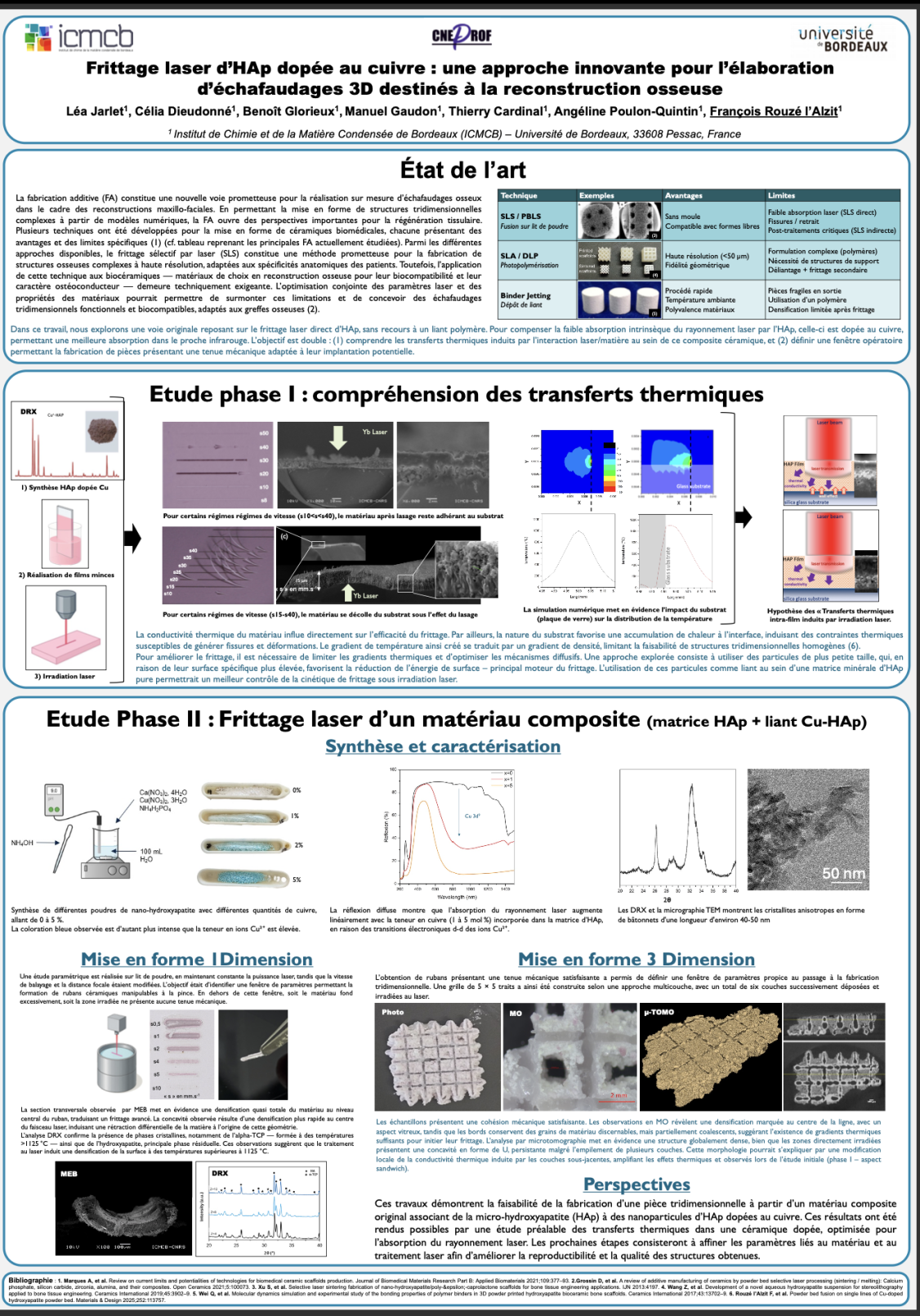 2025 – Frittage laser d’HAp dopée au cuivre : une approche innovante pour l’élaboration d’échafaudages 3D destinés à la reconstruction osseuse