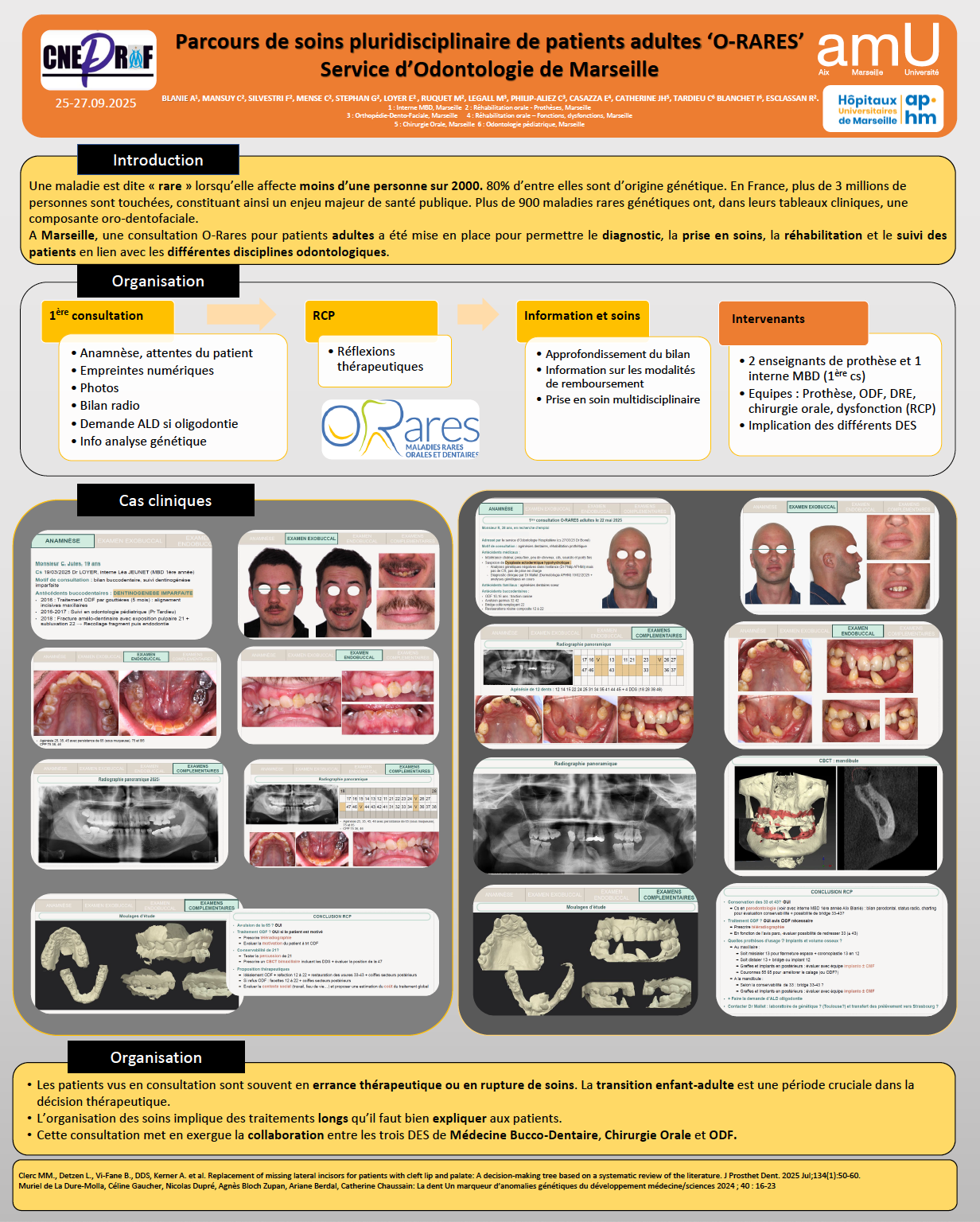 2025 - Parcours de soins pluridisciplinaire de patients adultes ‘O-RARES’ : Service d’Odontologie de Marseille