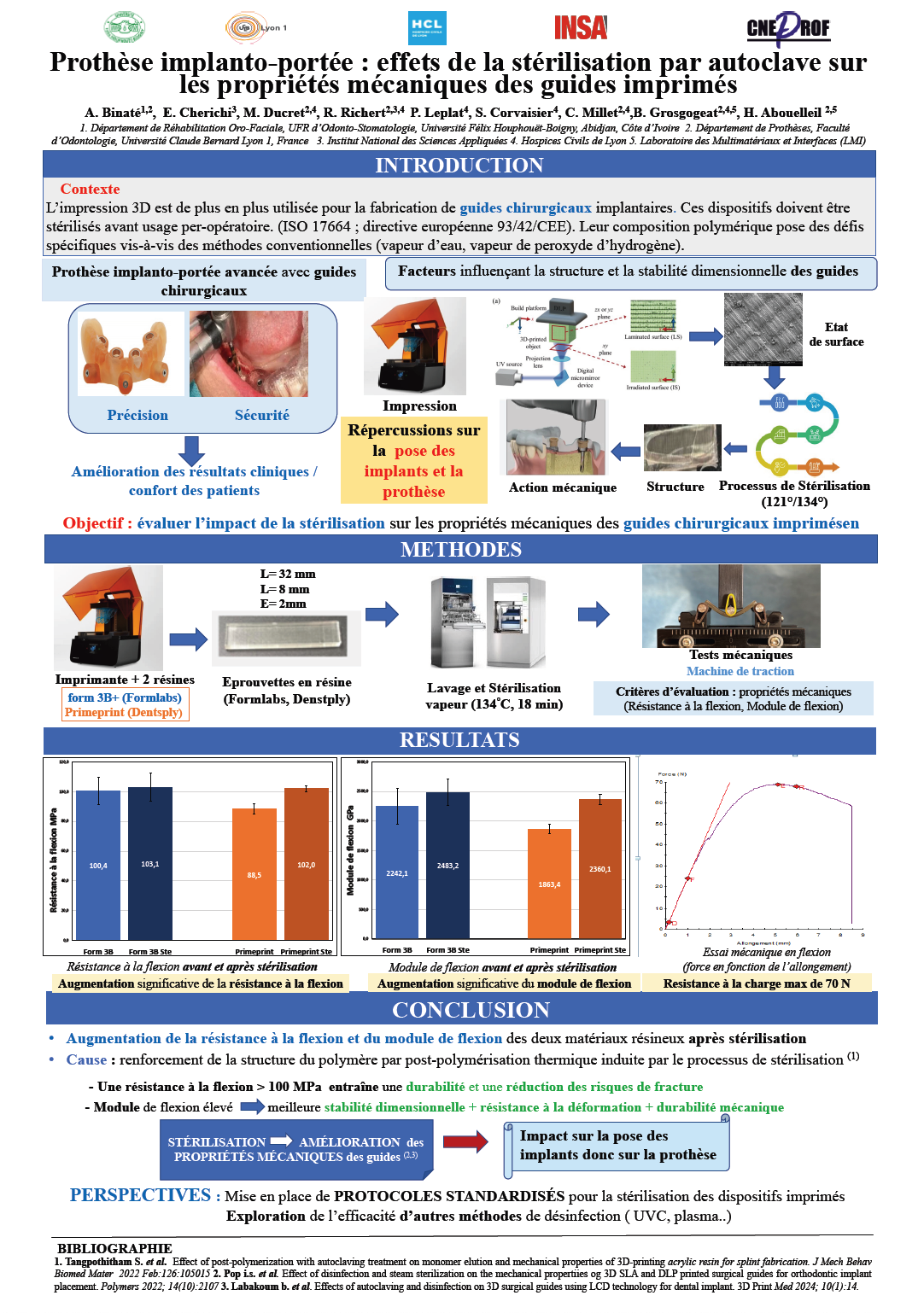 2025 - Prothèse implanto-portée : effets de la stérilisation par autoclave sur les propriétés mécaniques des guides imprimés