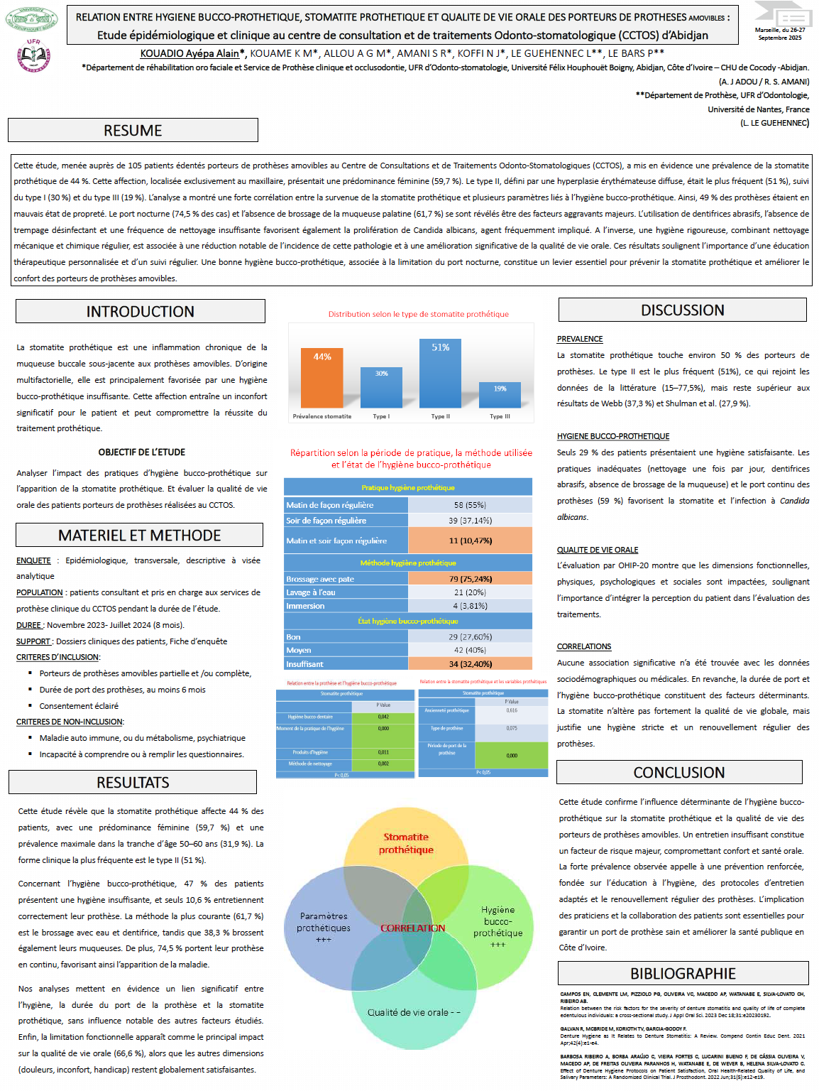 2025 - Relation entre hygiène buccale, stomatite prothétique et qualité de vie orale des porteurs de prothèses amovibles : Etude épidémiologique et clinique au centre de consultation et de traitements Odonto-stomatologique (CCTOS) d’Abidjan