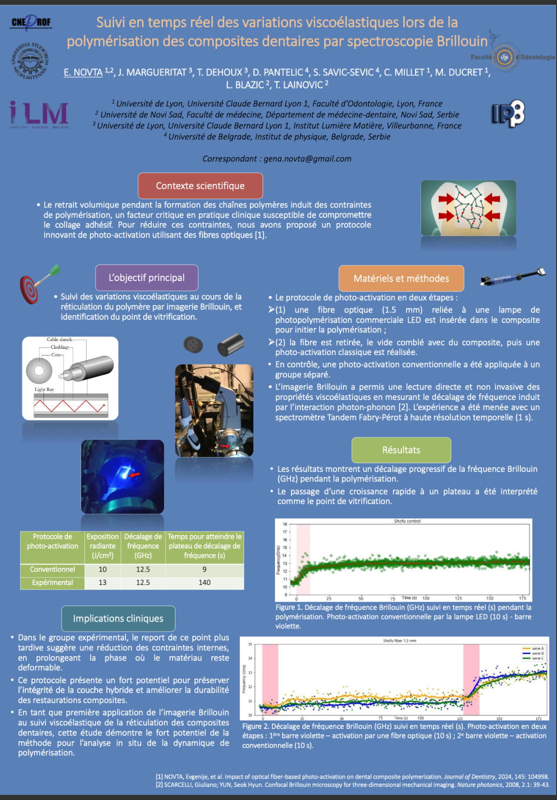 2025 – Suivi en temps réel des variations viscoélastiques lors de la polymérisation des composites dentaires par spectroscopie Brillouin
