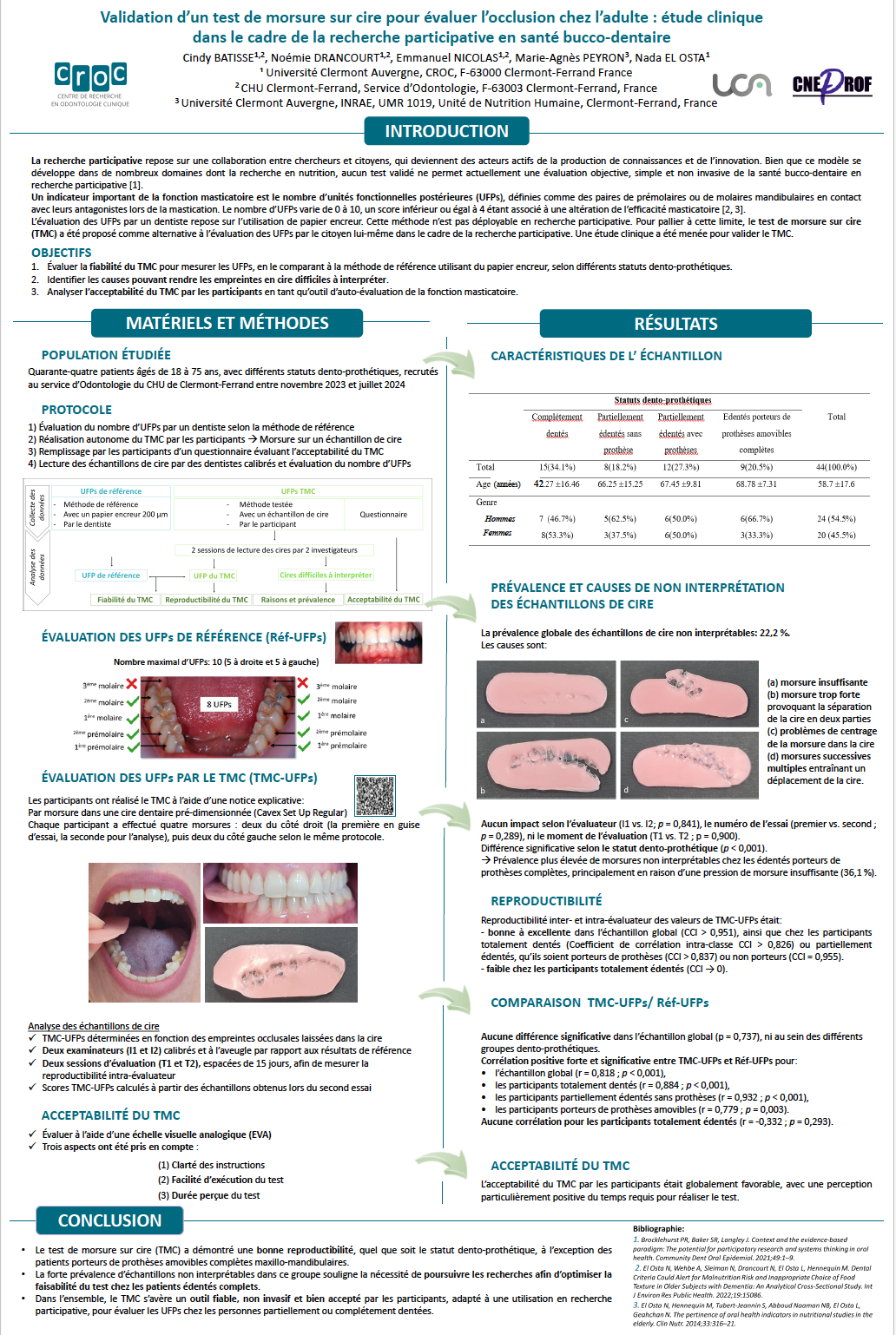 Conclusion : Le TMC est un outil fiable, non invasif et accepté pour évaluer les UFPs en recherche participative, hors édentés complets pour lesquels des adaptations sont nécessaires.